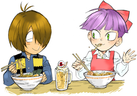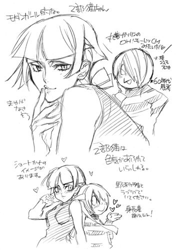 2部の猫ちゃんは美人に成長してねずみ男を手玉に取りつつ鬼太郎とほのぼのと仲良しでいそうな気がします。自分絵だとこう、微妙なんですけど、昔の丸善ガソリン(現コスモ石油)のコマーシャルに出て来た「オー!モーレツ!」のお姉さんみたいな。1969年のかな…?自分生まれてないんでアレですけど、あの時代の「素敵なお姉さん」に成長してくださる気がします。
