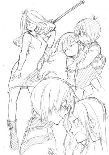 サマーセーターなどでなければあまり季節感のない絵になってしまいましたが、只今「ミス・マープル」のDVDを観てまして、室内でこういうシーンがあったので鬼と猫で描いてみました。