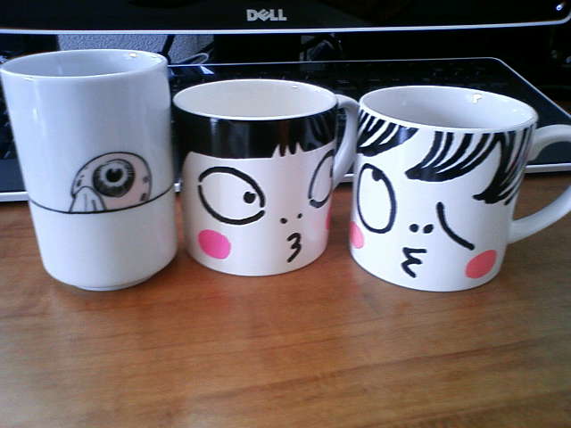 だって…!お湯を入れたら描いてある親父が赤くなったり、猫ちゃんと鬼太郎のほっぺが赤くなったりするお湯のみとマグカップですよ…!!!